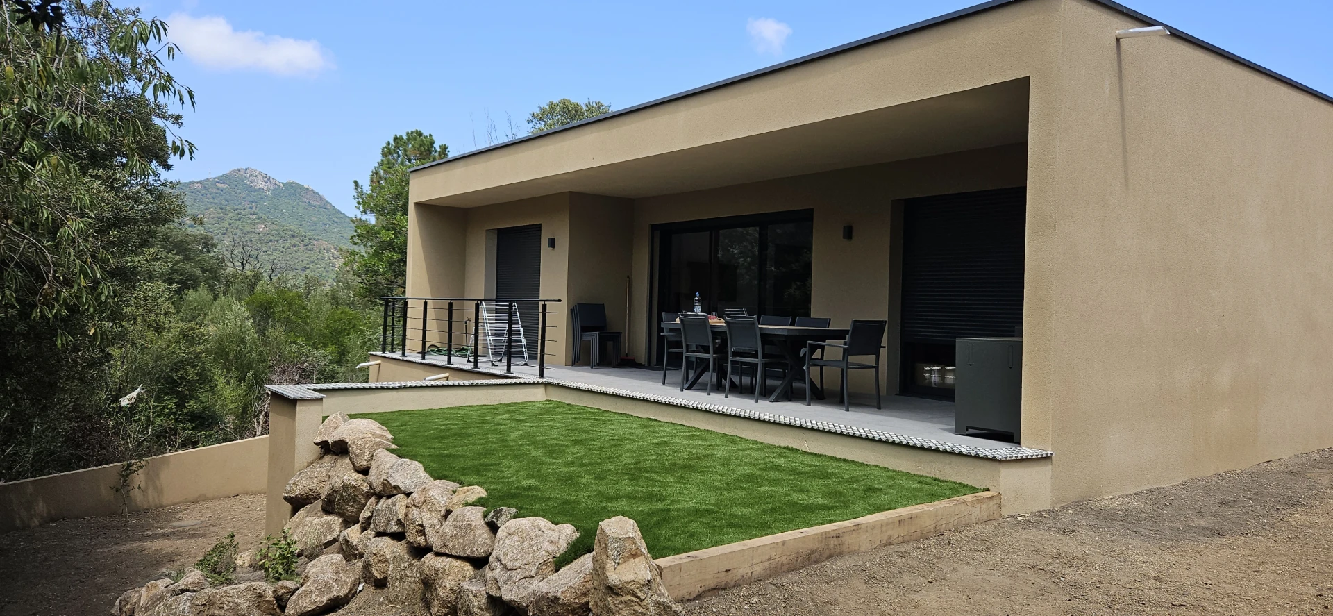 • Grande terrasse couverte avec vue montagne