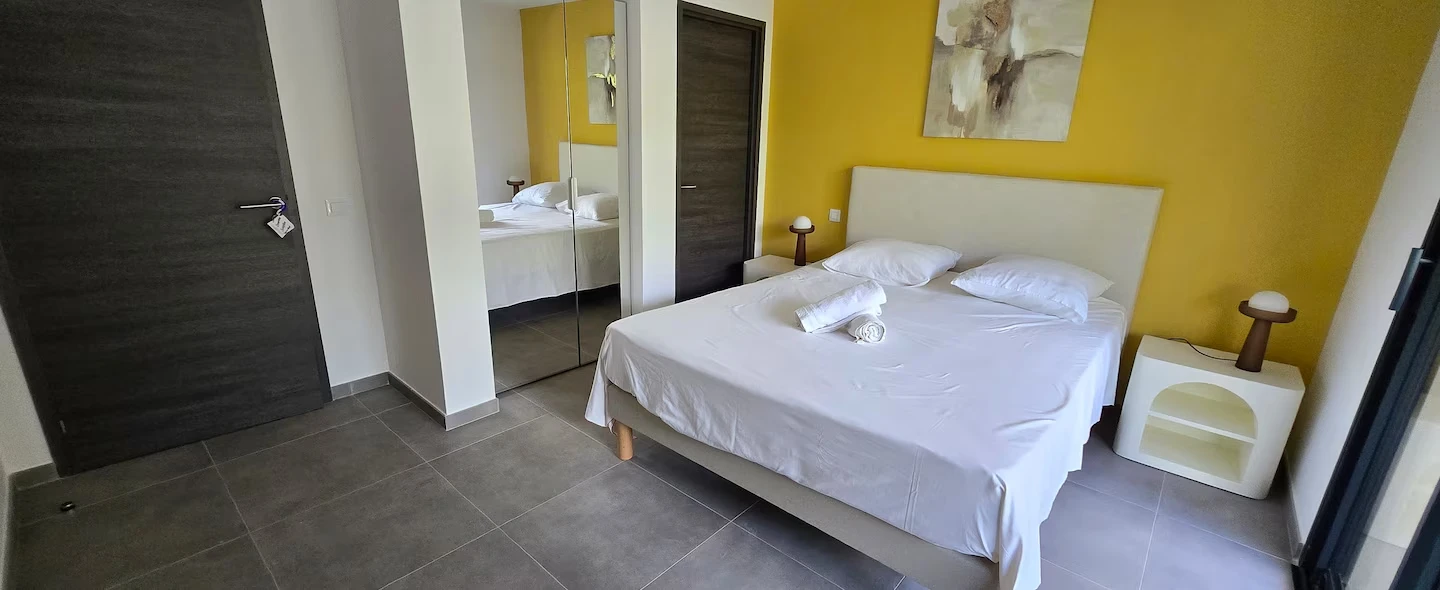 • Chambre 2 avec grand dressing et accès terrasse: Lit 2 personnes (160×200)