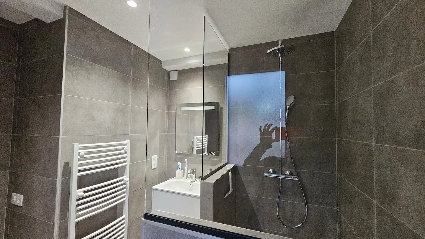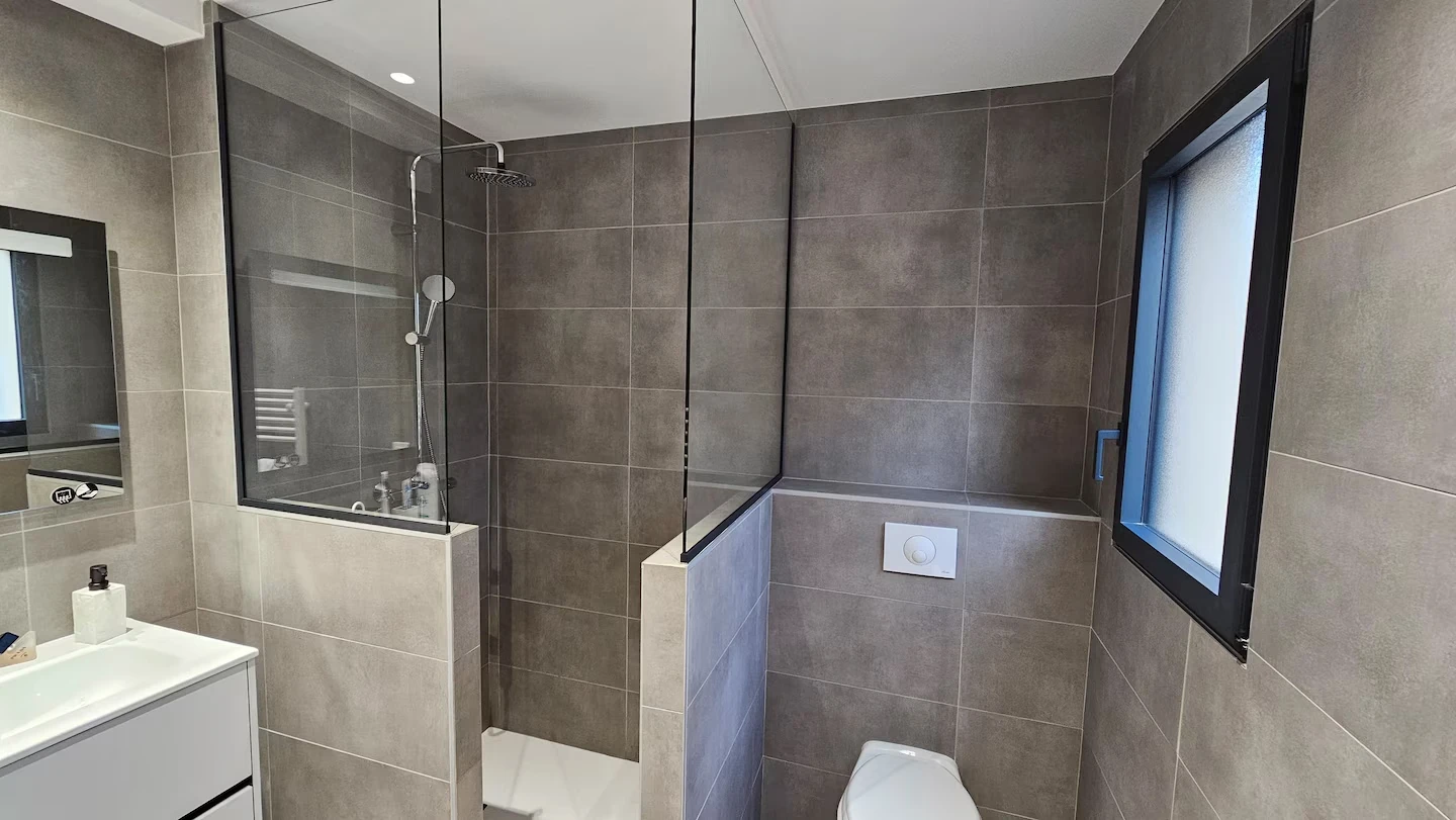 • Chambre 3 avec 2 lits simples (gigogne), canapé convertible, dressing et vue montagne