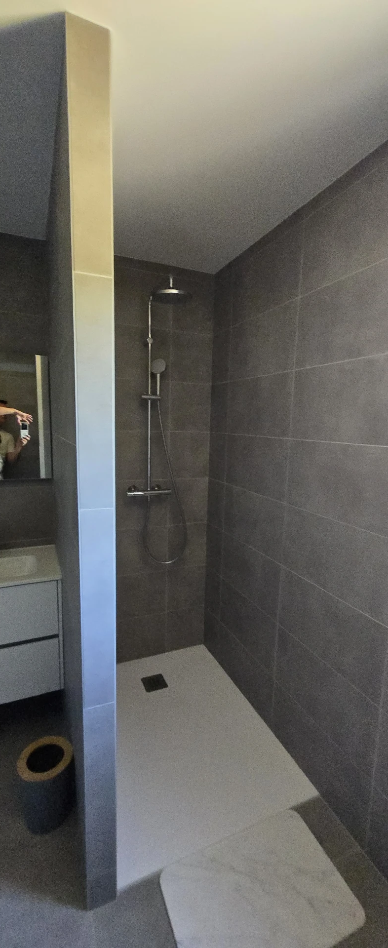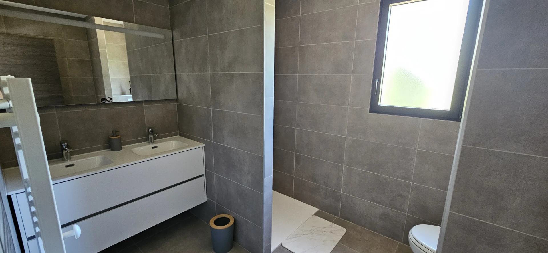 • Salle de douche avec meuble vasque et WC