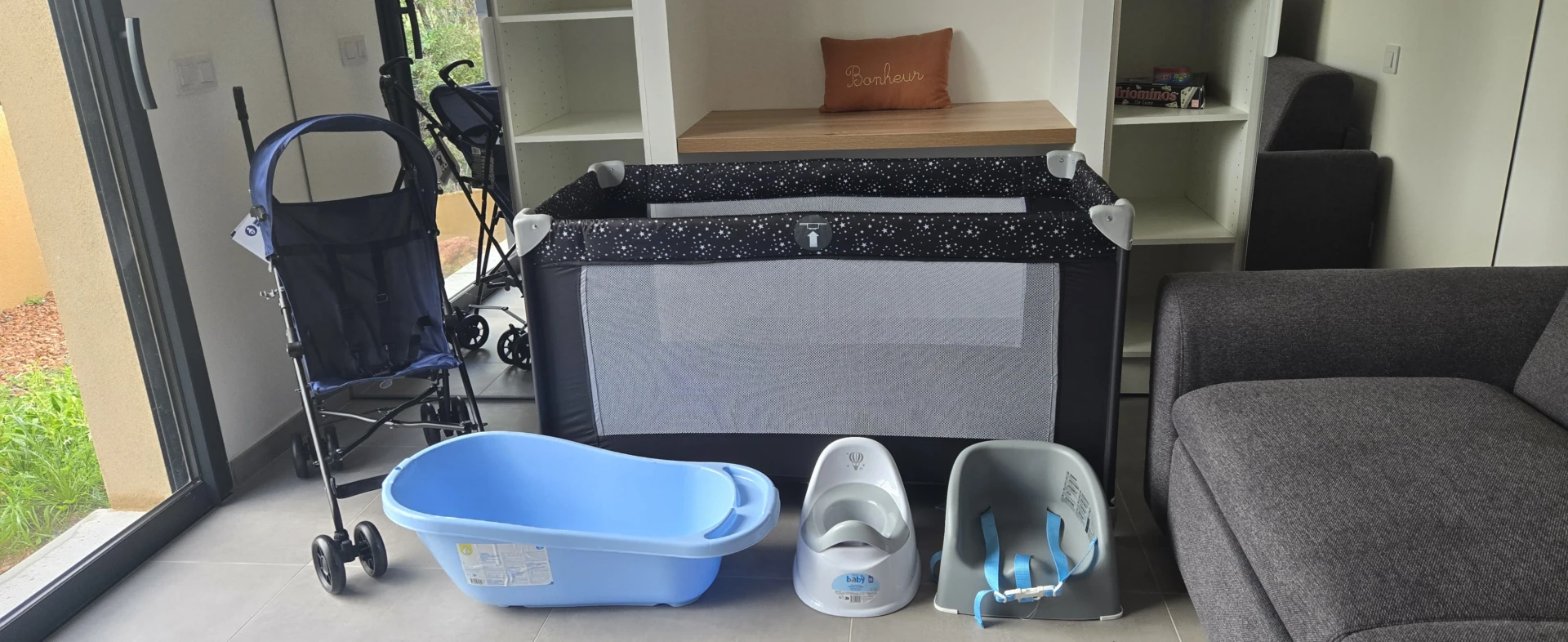 • Kit bébé mis à disposition gratuitement (lit pliant avec sur matelas, poussette, chaise haute, table à langer)