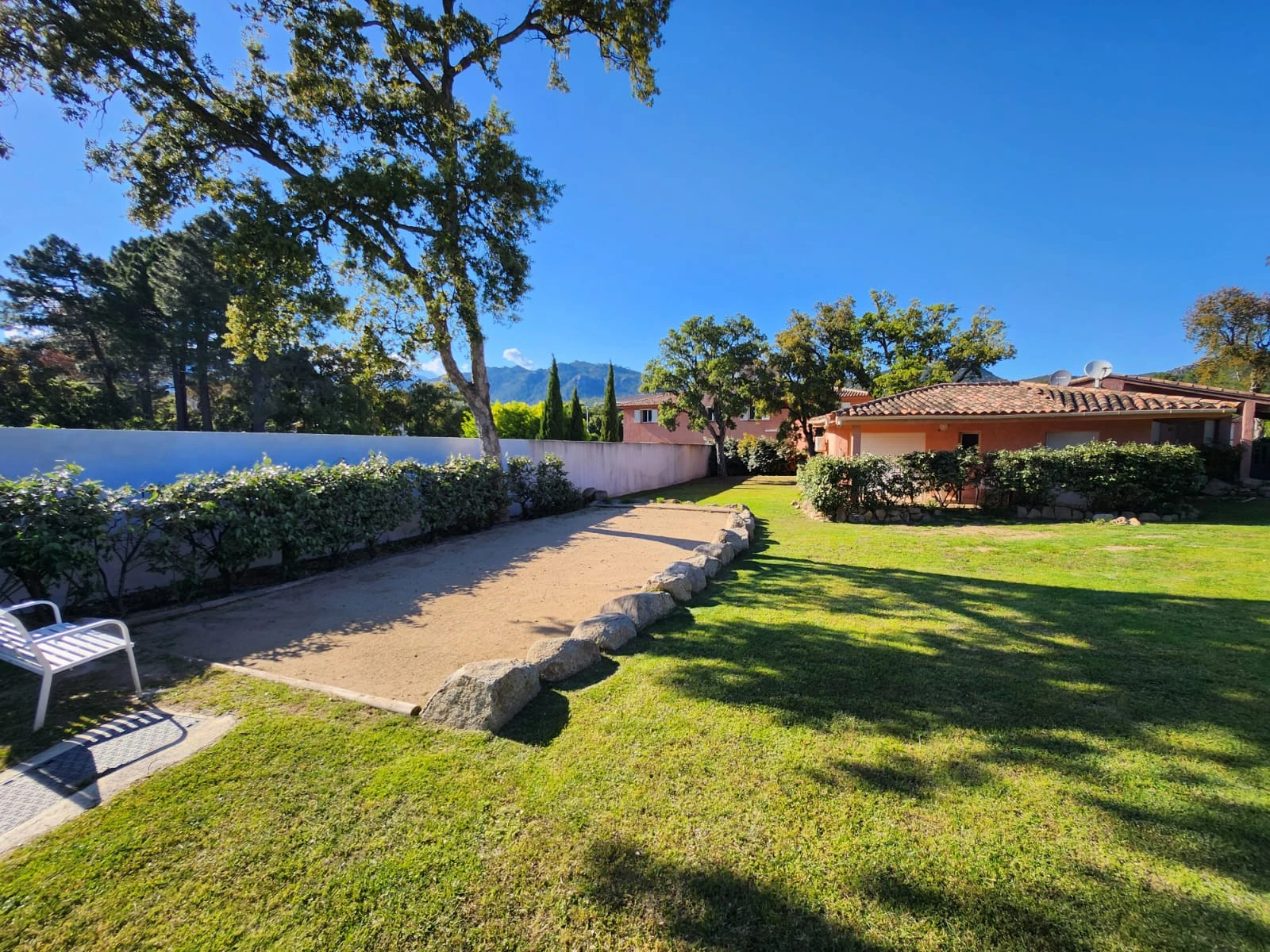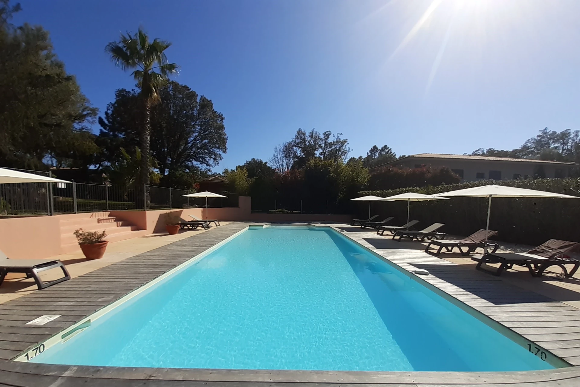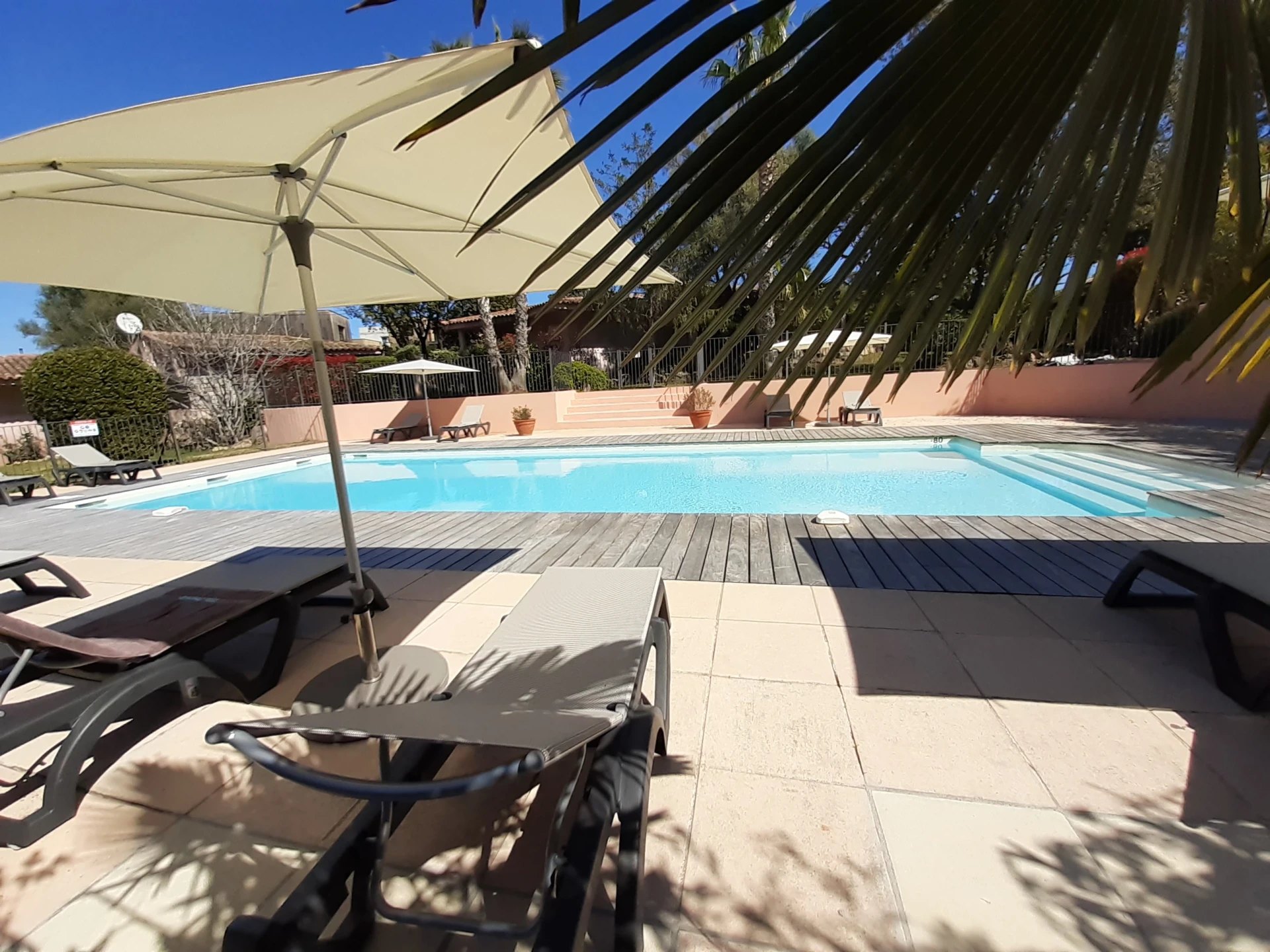 • Dans la résidence : Grande piscine chauffée ( 17x6m ) à 20m avec bains de soleil et parasols – Terrain de pétanque