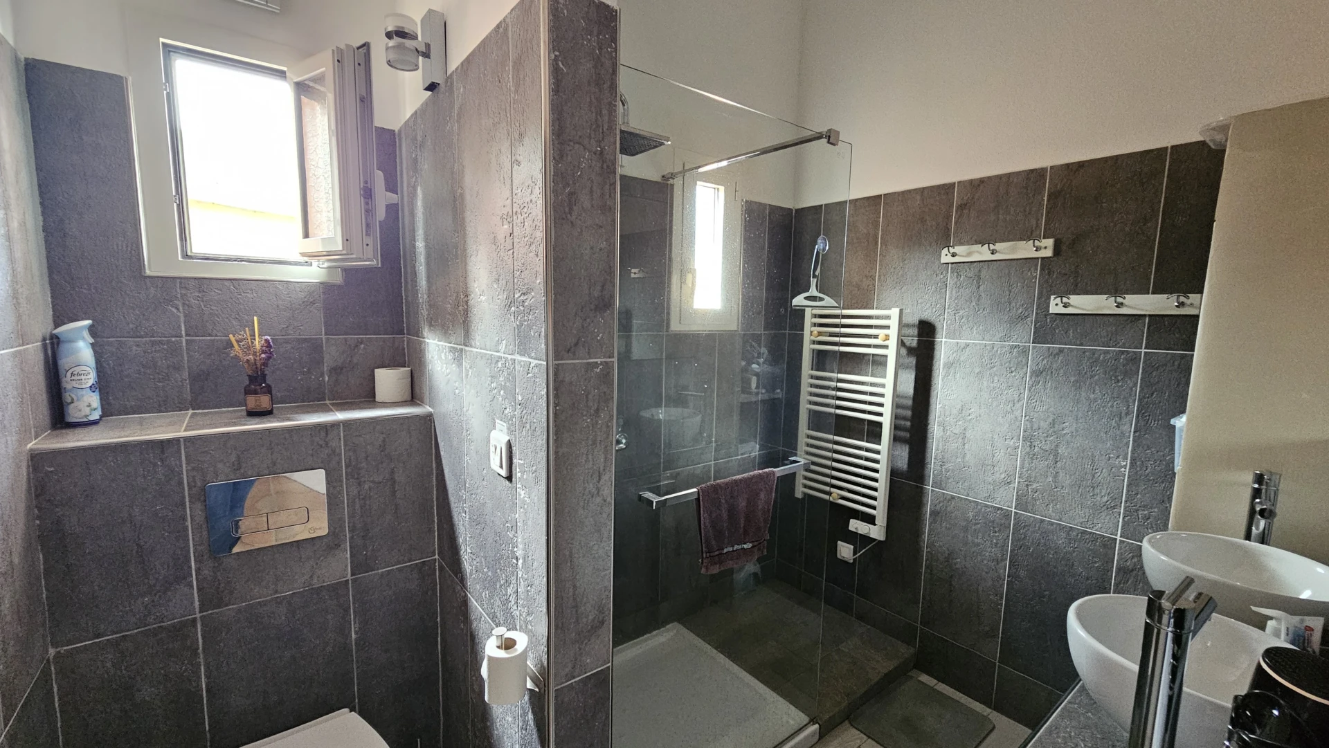 • Salle de douche refaite entièrement (double vasque et WC)