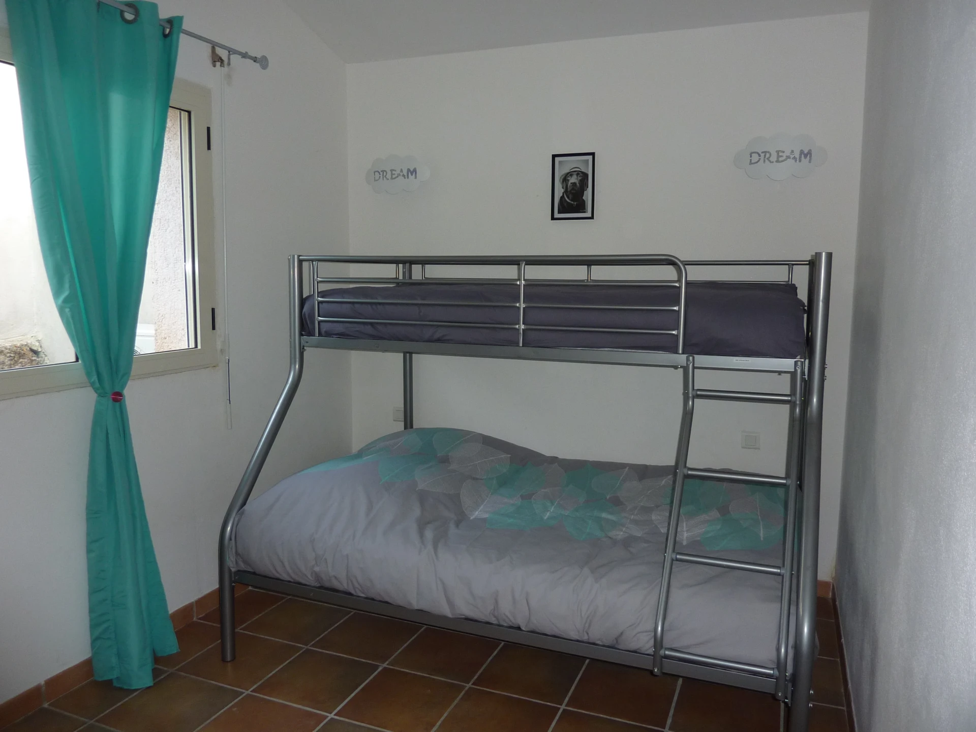 • Chambre 2 avec grande penderie: Lit superposé (140×190 en bas – 90×190 en haut)